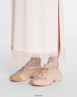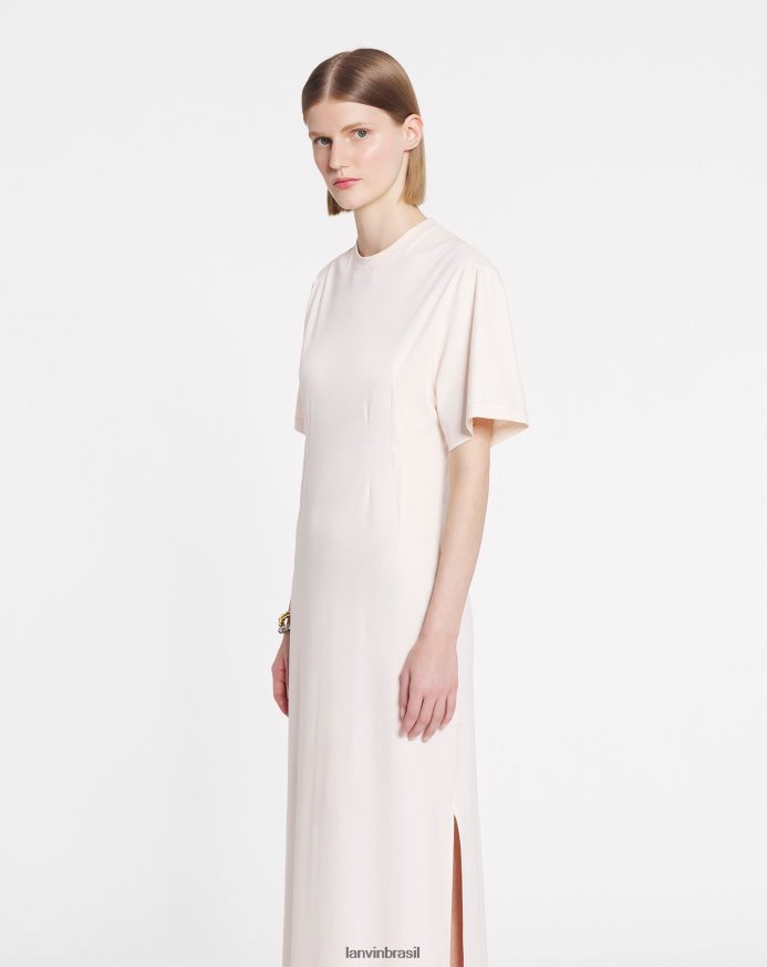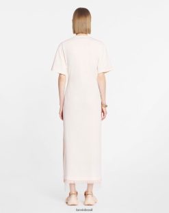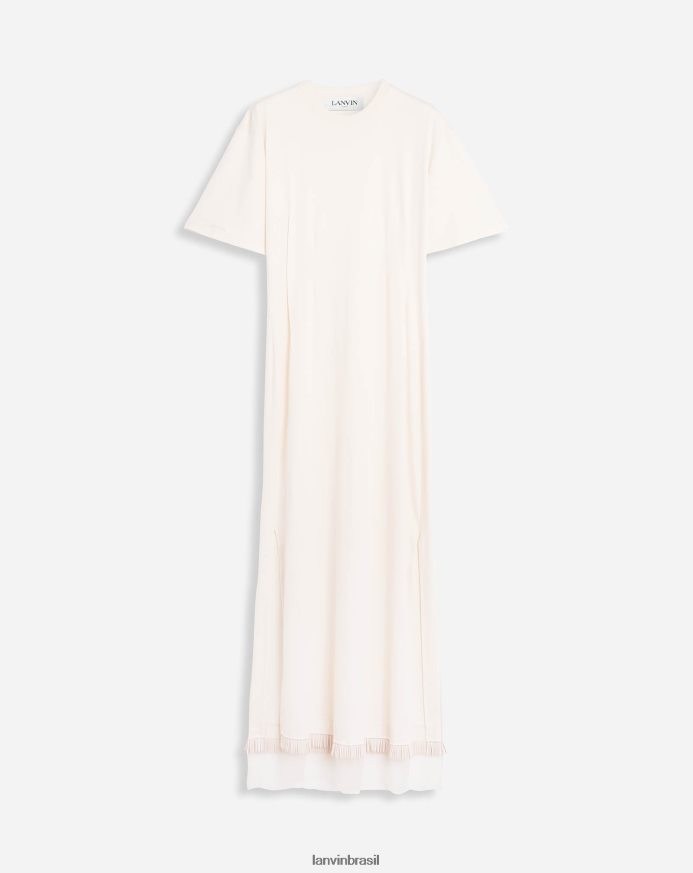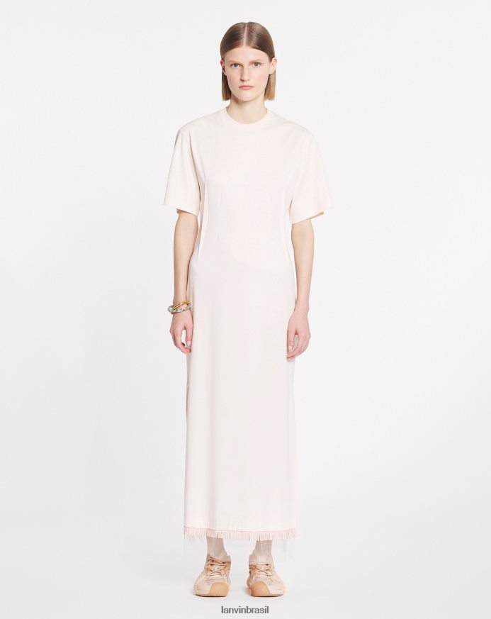 - vestido t-shirt longo em jersey com mangas curtas e efeito de forro visível em tule e bordado
