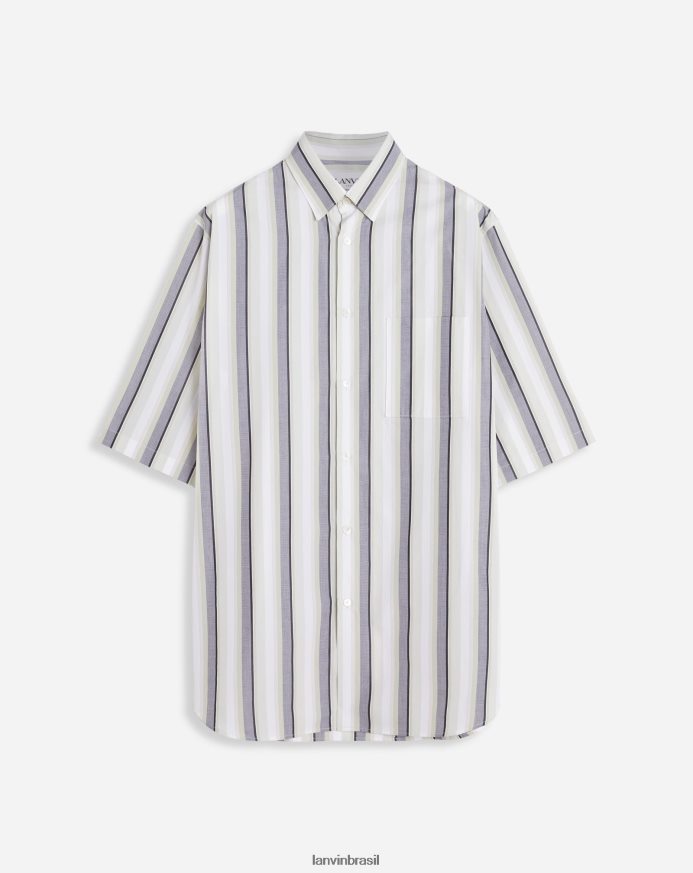 - manga curta, corte oversized, camisa com bolso frontal em algodão listrado jumbo multicolorido popelina.