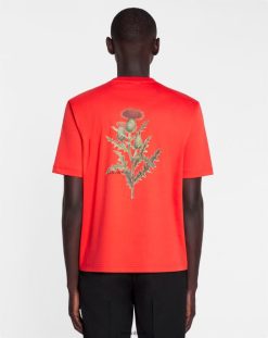 papoula vermelha roupas 8V66TB251 Lanvin camiseta estampada botânica homens