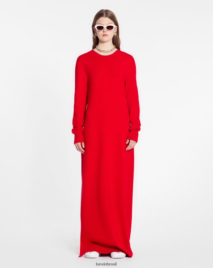 papoula vermelha roupas 8V66TB81 Lanvin vestido maxi aberto nas costas em lã e caxemira mulheres