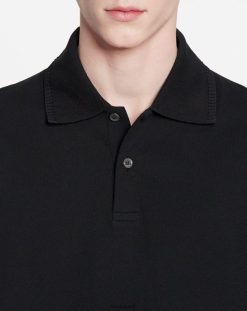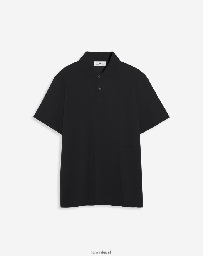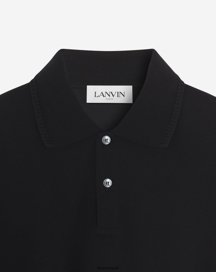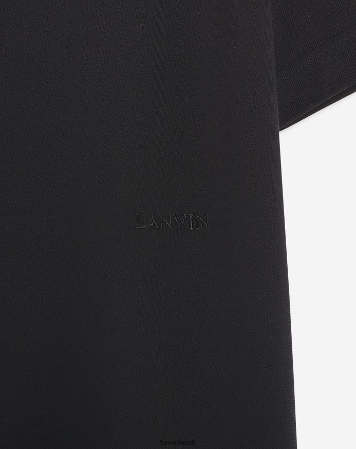 preto roupas 8V66TB115 Lanvin camiseta curta com bordado paris mulheres