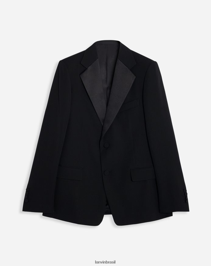 preto roupas 8V66TB338 Lanvin jaqueta com bolsos de aba e lapelas de cetim homens