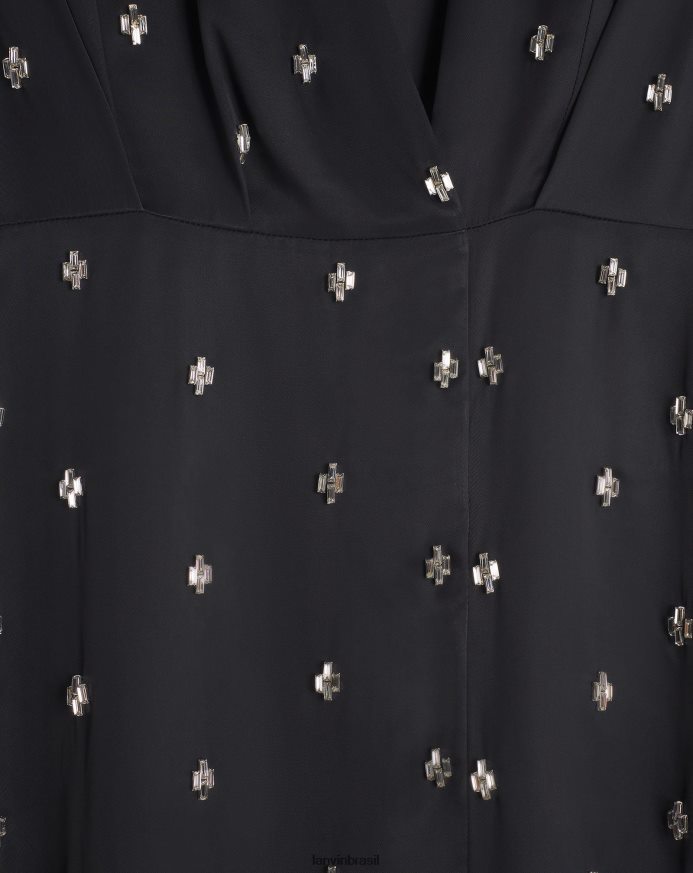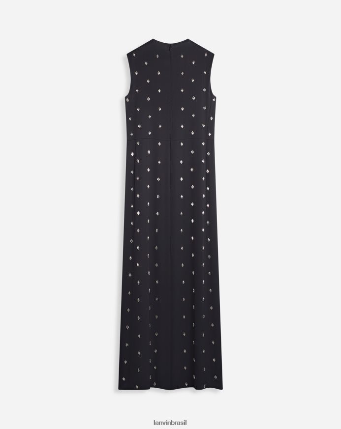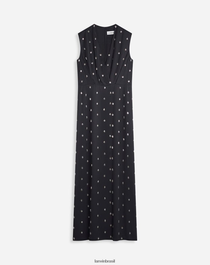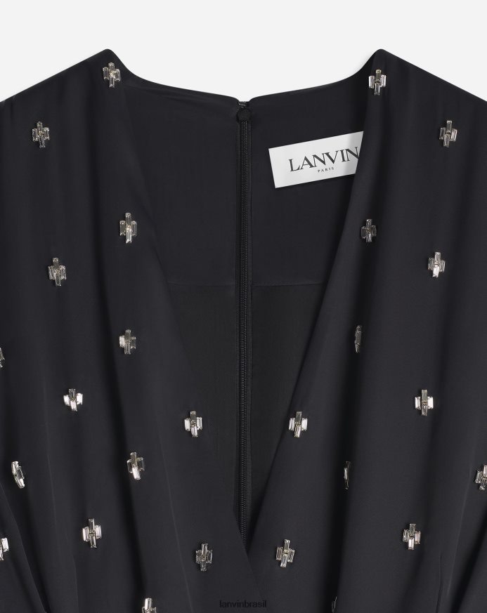 preto roupas 8V66TB42 Lanvin vestido envolvente sem mangas com decote em V em cetim mulheres