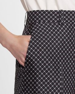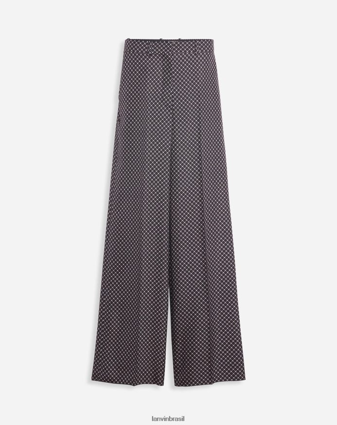 - perna larga fluida calças em seda com estampa floral geométrica