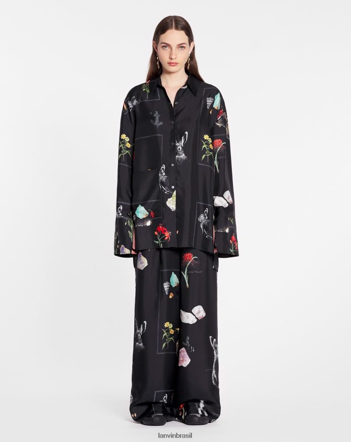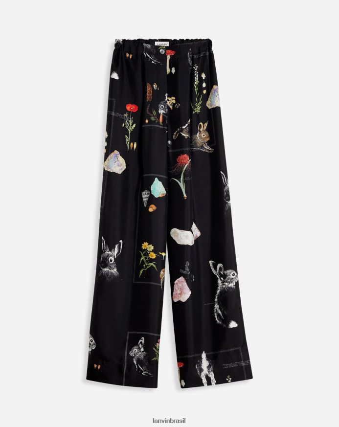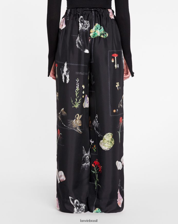 preto roupas 8V66TB463 Lanvin calça fluida estampada de perna larga em seda mulheres