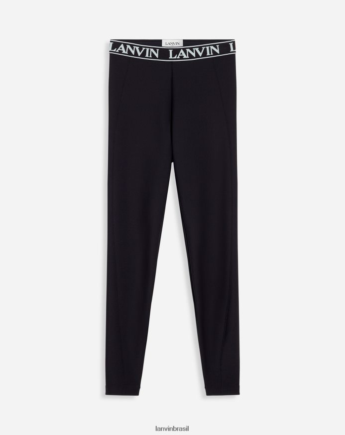 preto roupas 8V66TB115 Lanvin camiseta curta com bordado paris mulheres