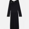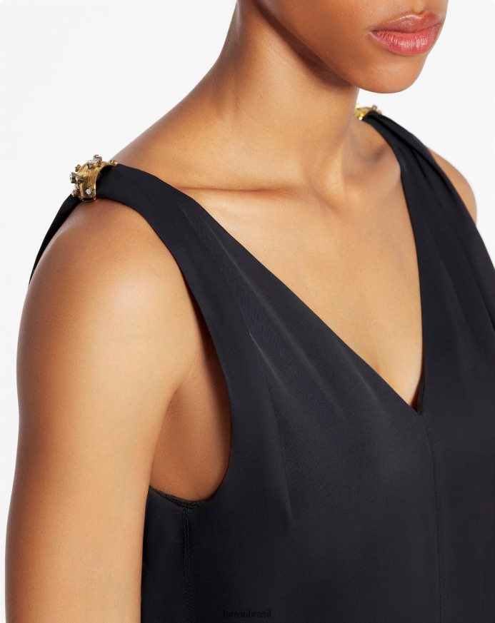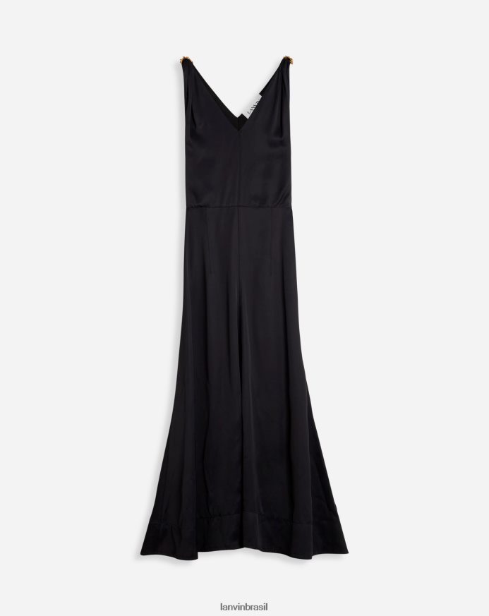 - ajuste e vestido midi flare com alças largas formando um decote em V profundo.