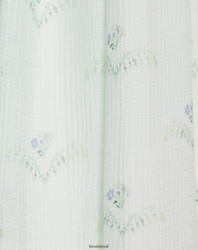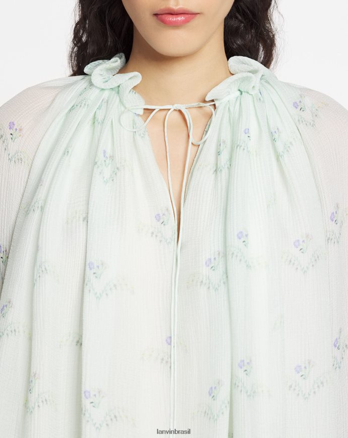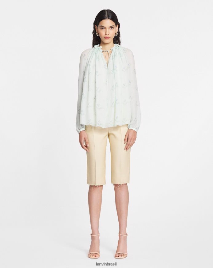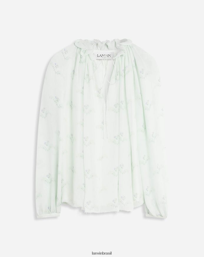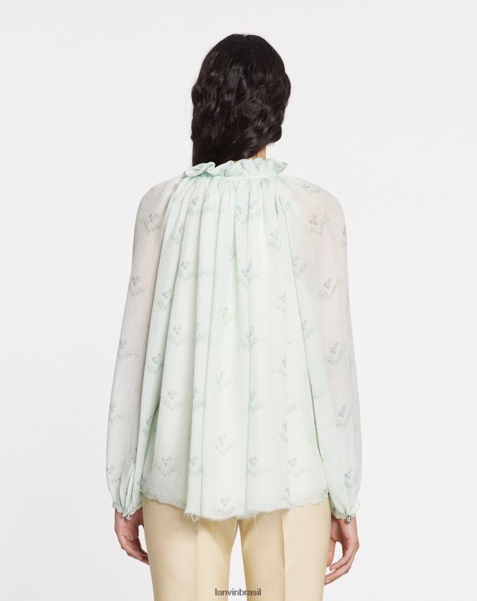 esta blusa é confeccionada com dupla camada de crepon de seda com acabamento especial para proporcionar um aspecto final ultrafluido e leve. inspirada nos padrões originais usados em peças de vestuário, tapeçarias e papéis de parede do século XVIII, esta estampa floral exclusiva foi desenvolvida para um visual natural e romântico.