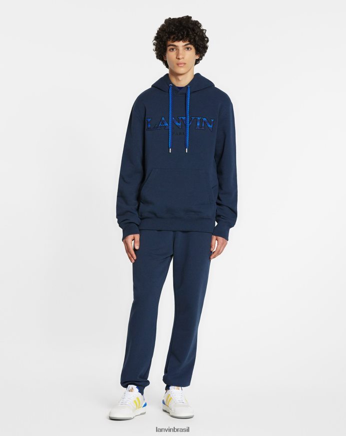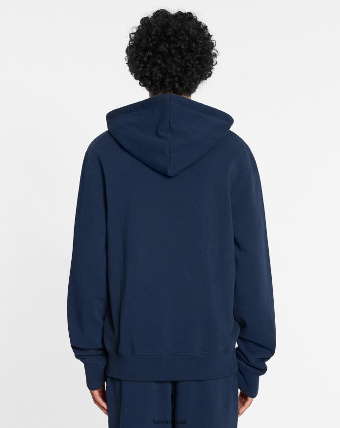 - suéter com capuz em lã de algodão adornado com o logotipo lanvin meio-fio bordado no cordões na frente e no meio-fio a condizer